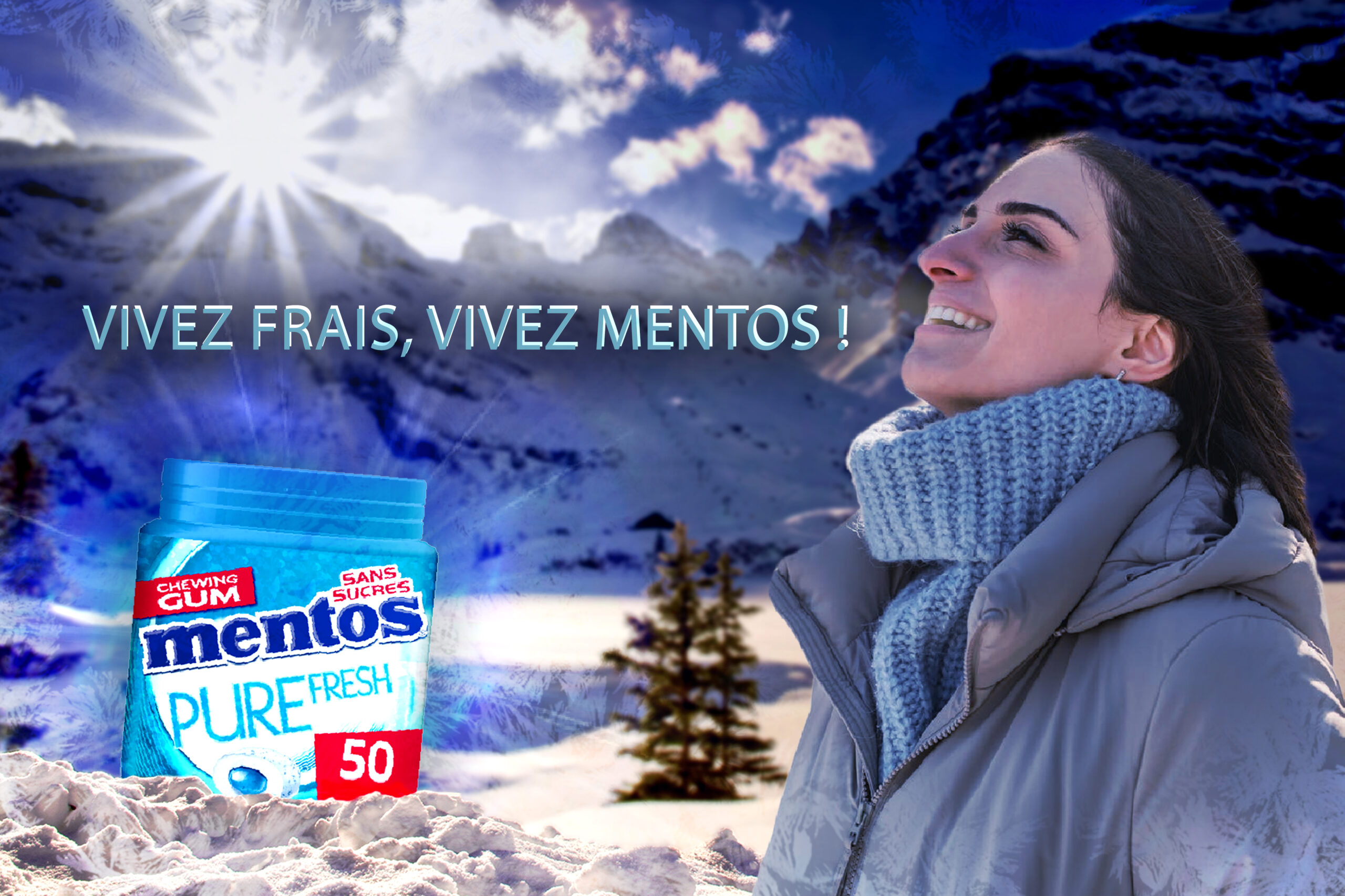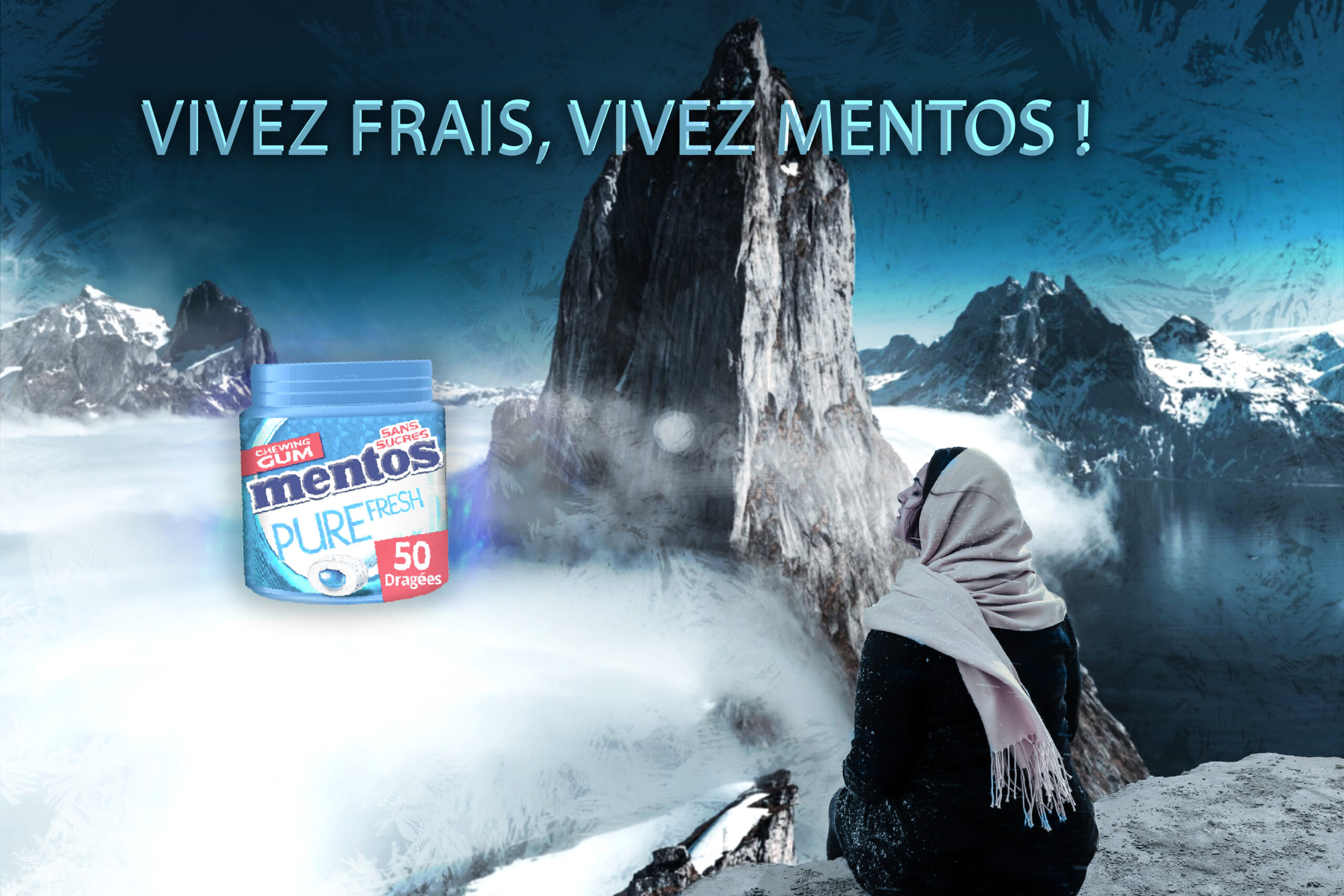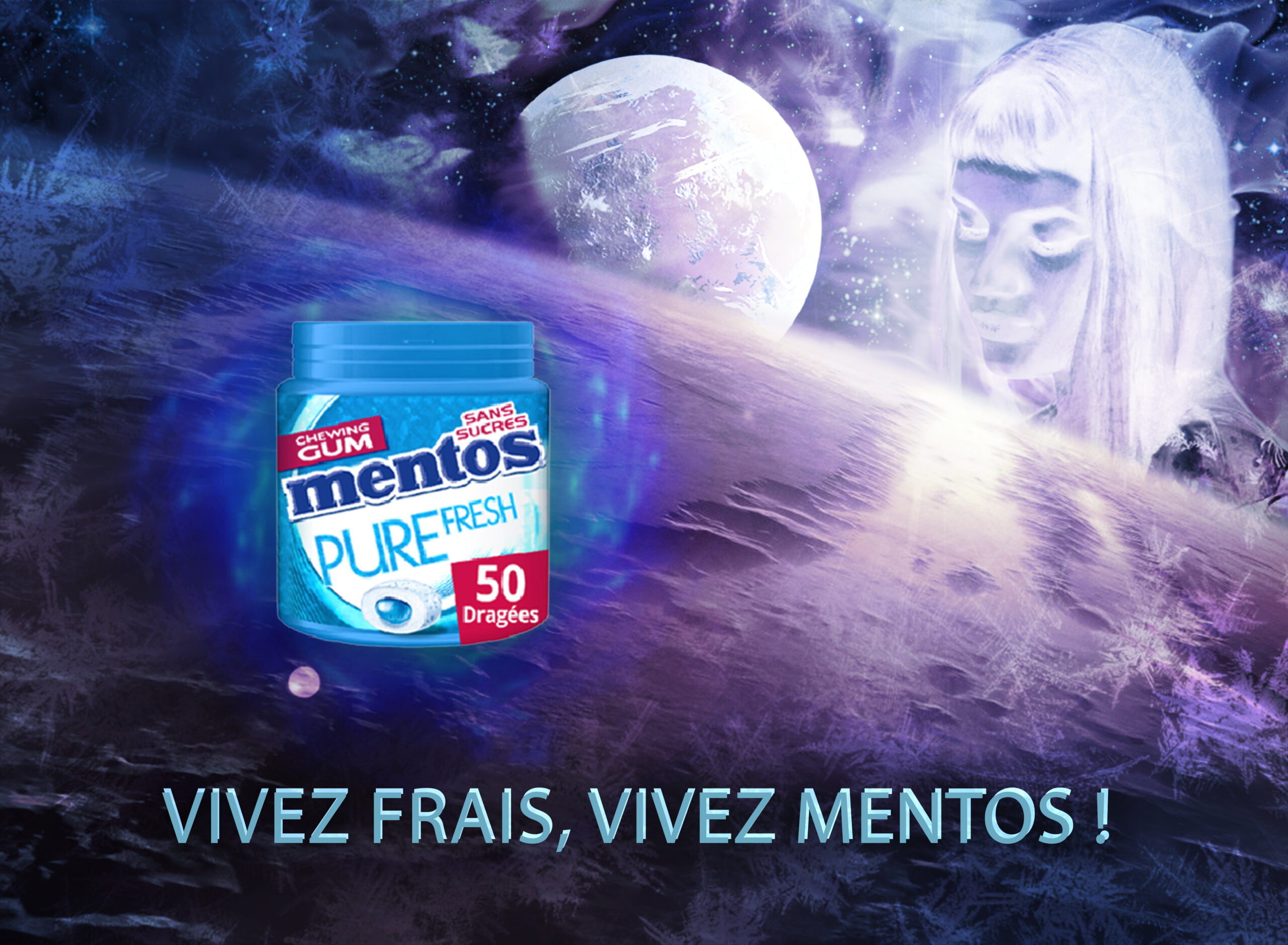 C’est la première publicité Mentos que j’ai faite. J’ai choisi des teintes bleues et blanches pour faire ressortir les couleurs…